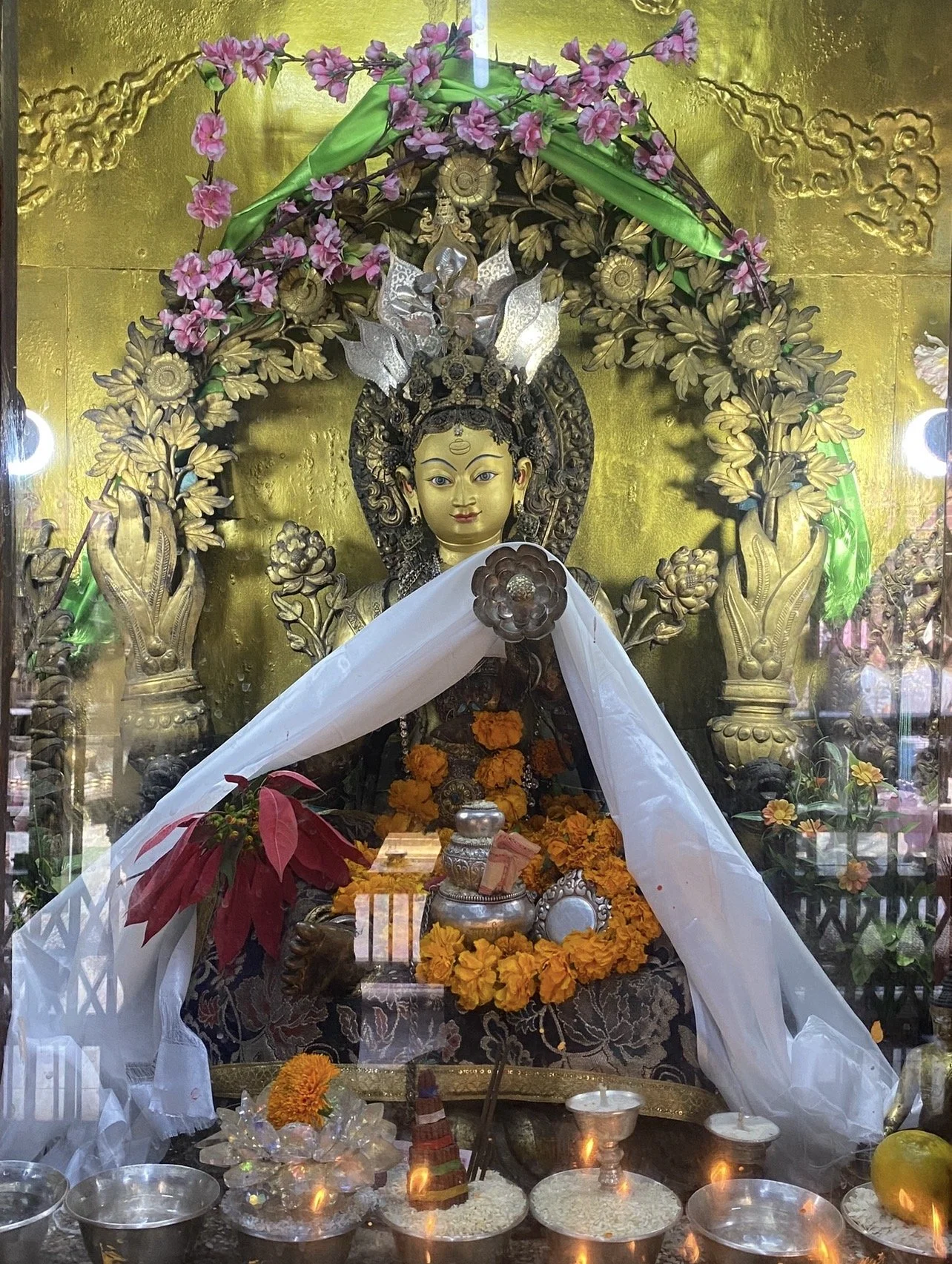 I’ve been returning to Kathmandu for 14 years now, and I’ve been fortunate to spend time with many precious shrines and statues. One that I return to often in my mind is the beautiful Tara in the Golden Temple in Patan.